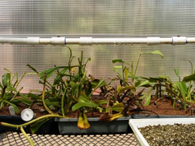 CUSTOM ROOTING - our greenhouse has a dedicated propagation area for the rooting of Nepenthes cuttings. This area maintains bottom heat of 80°F (27°C) and a misting cycle of 15 seconds every 7 minutes. Our substrate is a coarse laterite-like material that is well draining yet retains moisture and promotes germination. We treat all cuttings with hormones to induce the fastest formation of adventitious roots with generally good success. You supply fresh material or feel free to inquire about rooting from our stock plants - we have a large number of Nepenthes species and hybrids from which to choose.